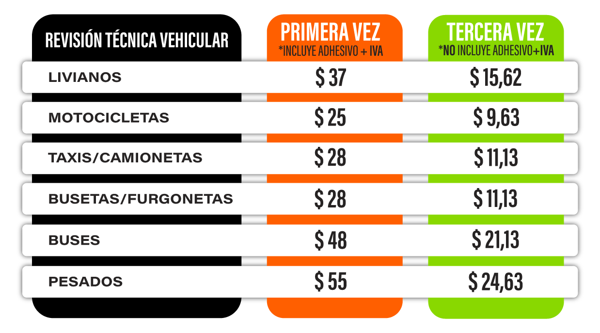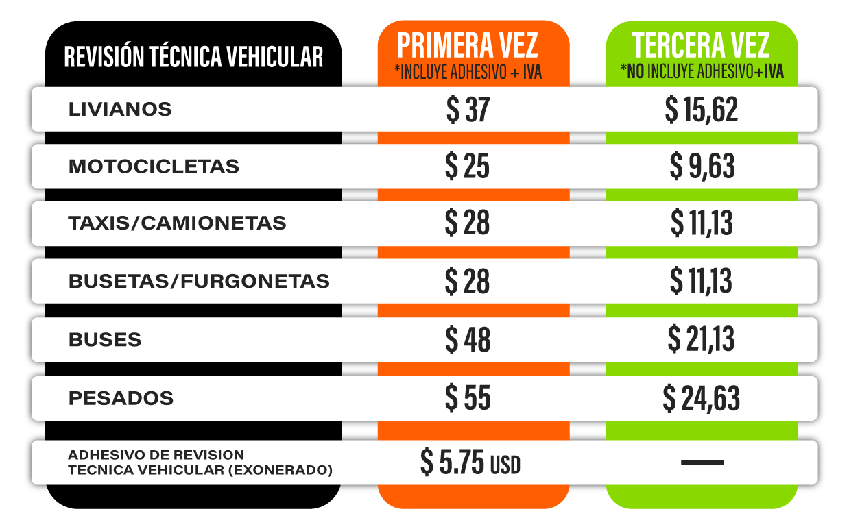 * Todos las tarifas están reguladas por la AGENCIA NACIONAL DE TRANSITO (ANT),